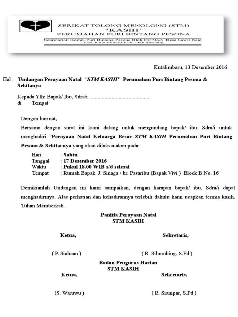 Contoh undangan natal stm (serikat tolong menolong) dalam suatu lingkungan kelurahan.